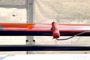 もちろん、いつも通り、しっかり下地補修。塗膜の剥離が多く、ケレン作業が大変でした。